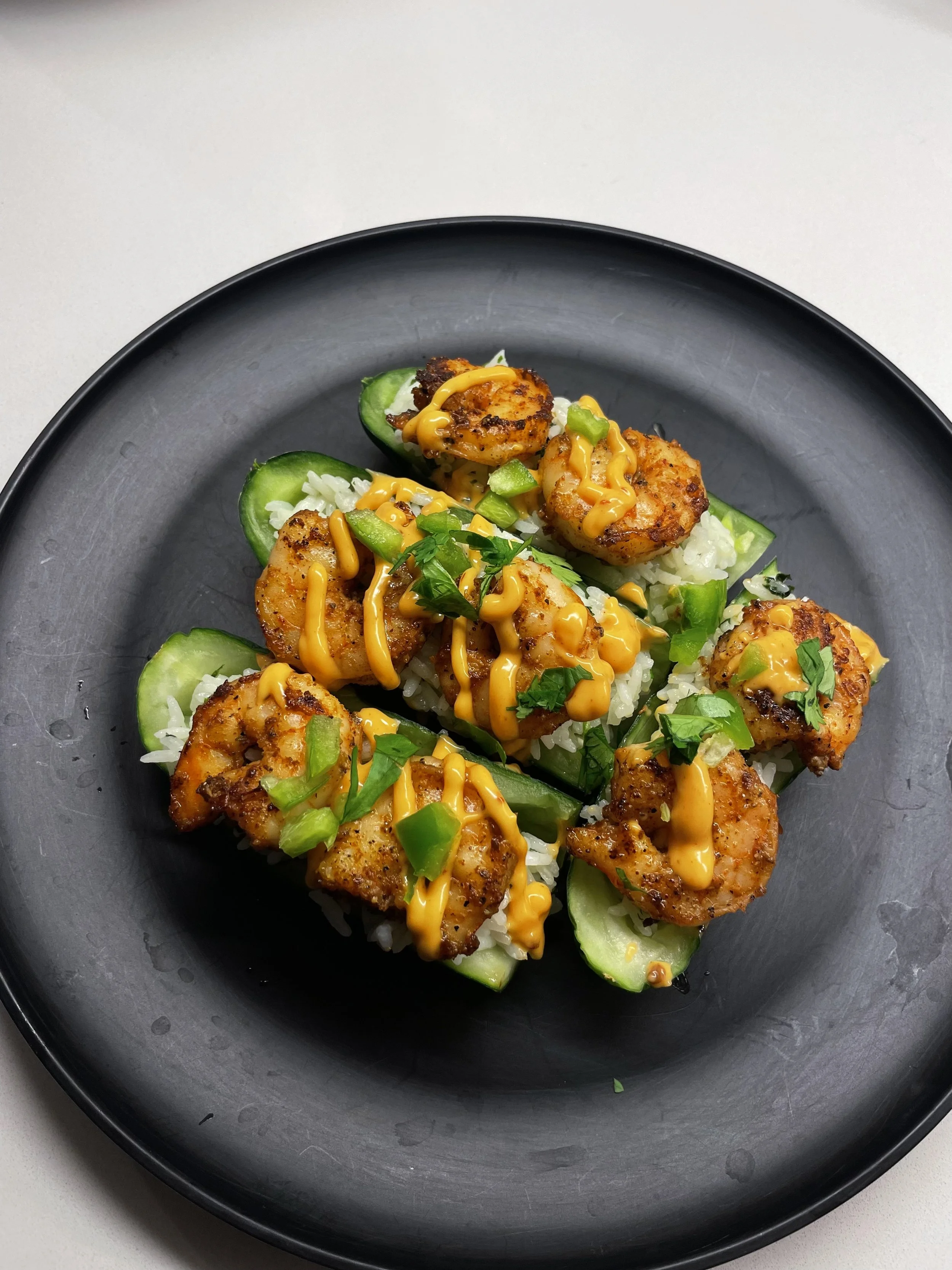 Light, fresh, and packed with flavor! these shrimp cucumber boats are the perfect balance of clean fuel and bold taste. Juicy shrimp, crisp cucumber, and a touch of heat come together for a refreshing, protein-packed bite that keeps you satisfied without feeling heavy.
