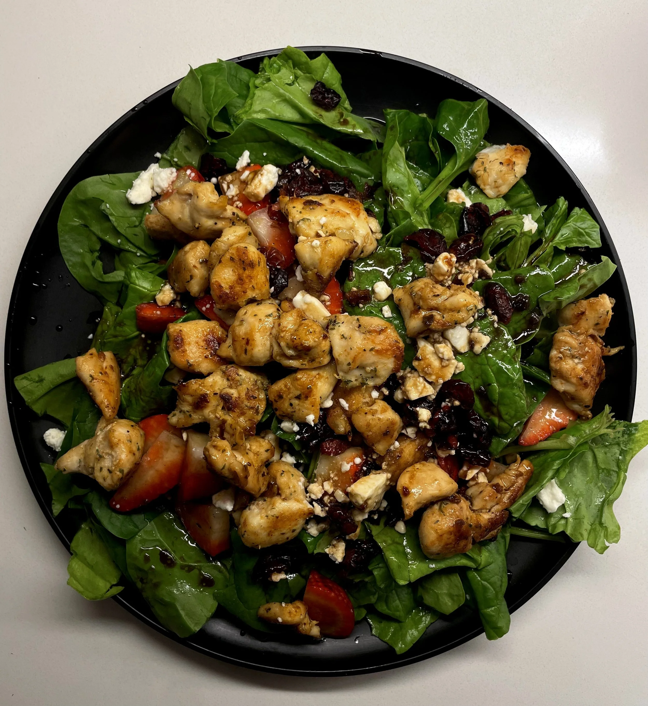 Fresh, vibrant, and protein-packed- this strawberry feta salad combines sweet and savory flavors with grilled chicken, leafy greens, and healthy fats to keep you full and energized. Balanced, nourishing, and intentionally made to support your goals while still tasting amazing.